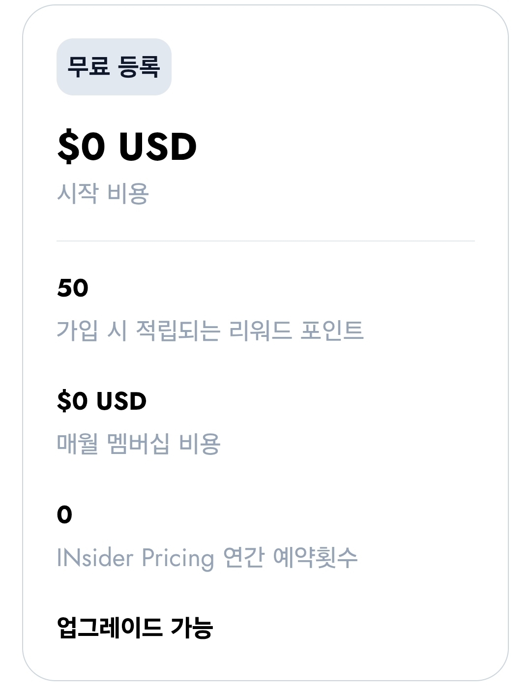 - 가입/월 멤버십 비용 : $0 USD